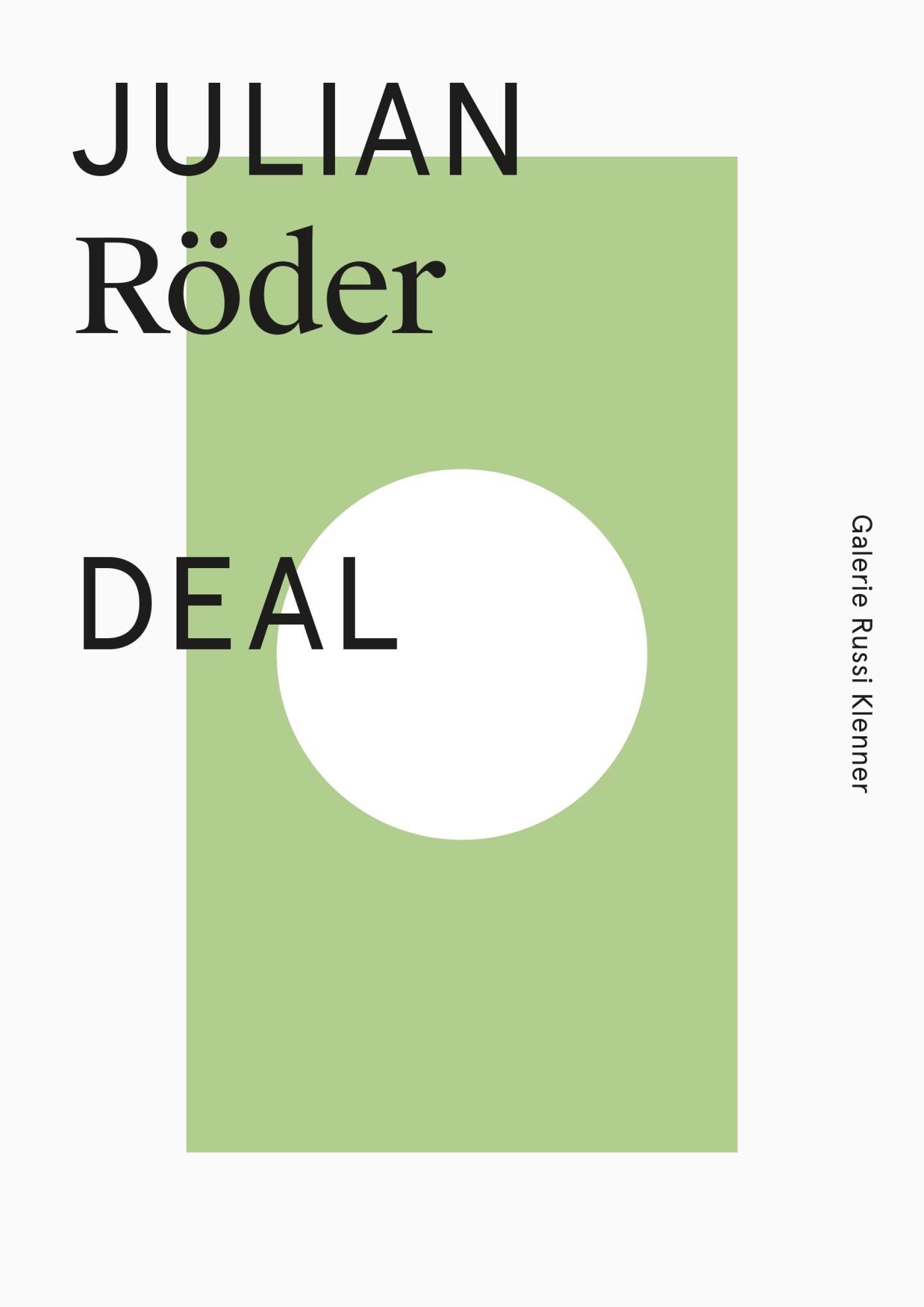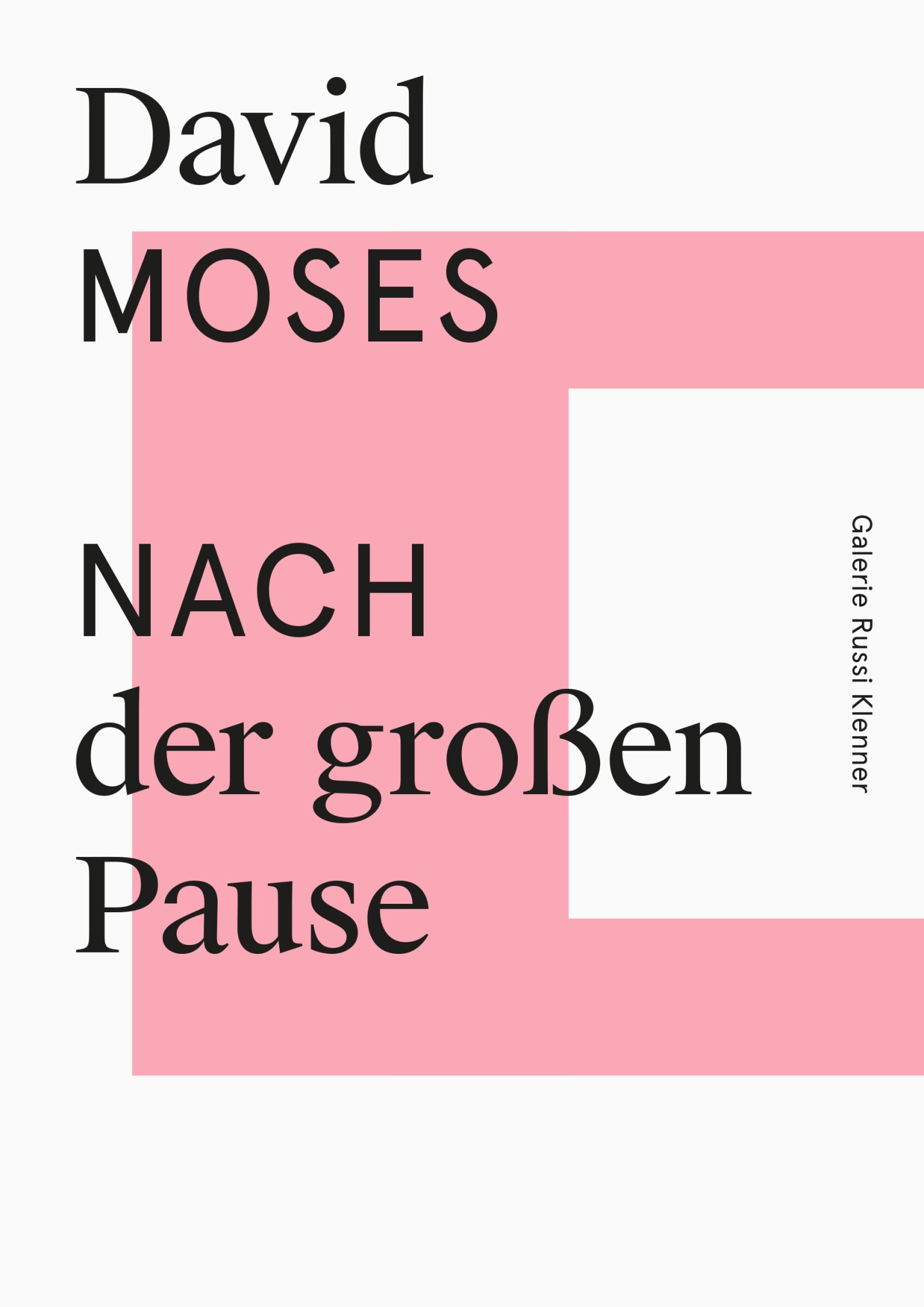 To this end, drawing on ever-surprising variations of a set of purposefully few but striking design elements — the interplay of a mix of clean black type against the background of an abstract, single-color figure on a white base — a highly recognizable cross-media appearance is defined for every artist and exhibition, featuring both as full-screen images on the gallery’s home page and in print on its generously-sized invitation cards.