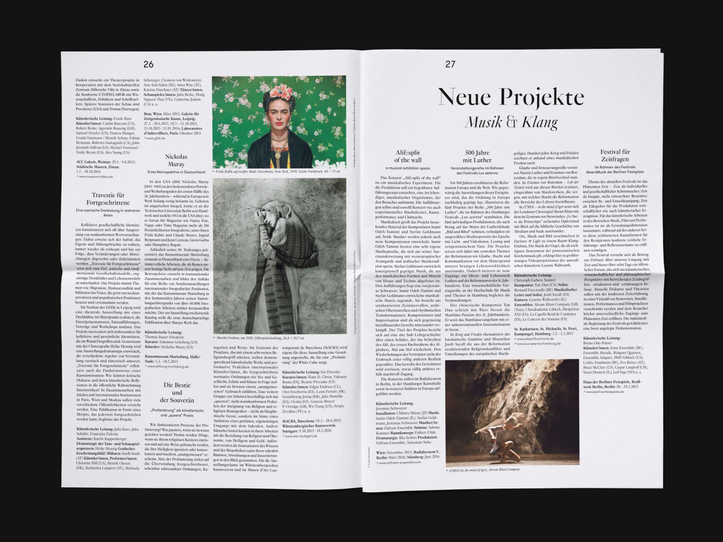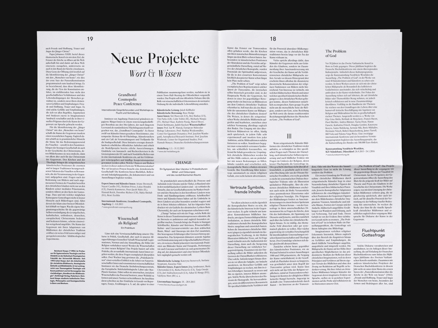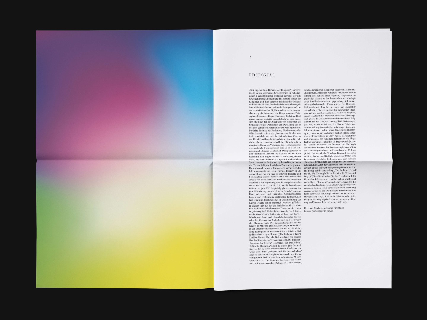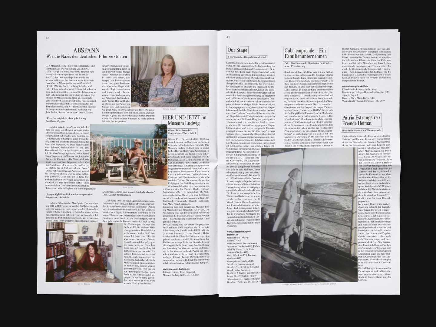 The bi-annual magazine published by The German Federal Cultural Foundation. The foundation specifically engages in projects that develop new methods of fostering cultural heritage and tap into the cultural and artistic potential of knowledge required to address social issues and cultural exchange across borders.