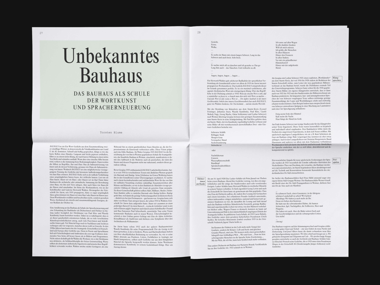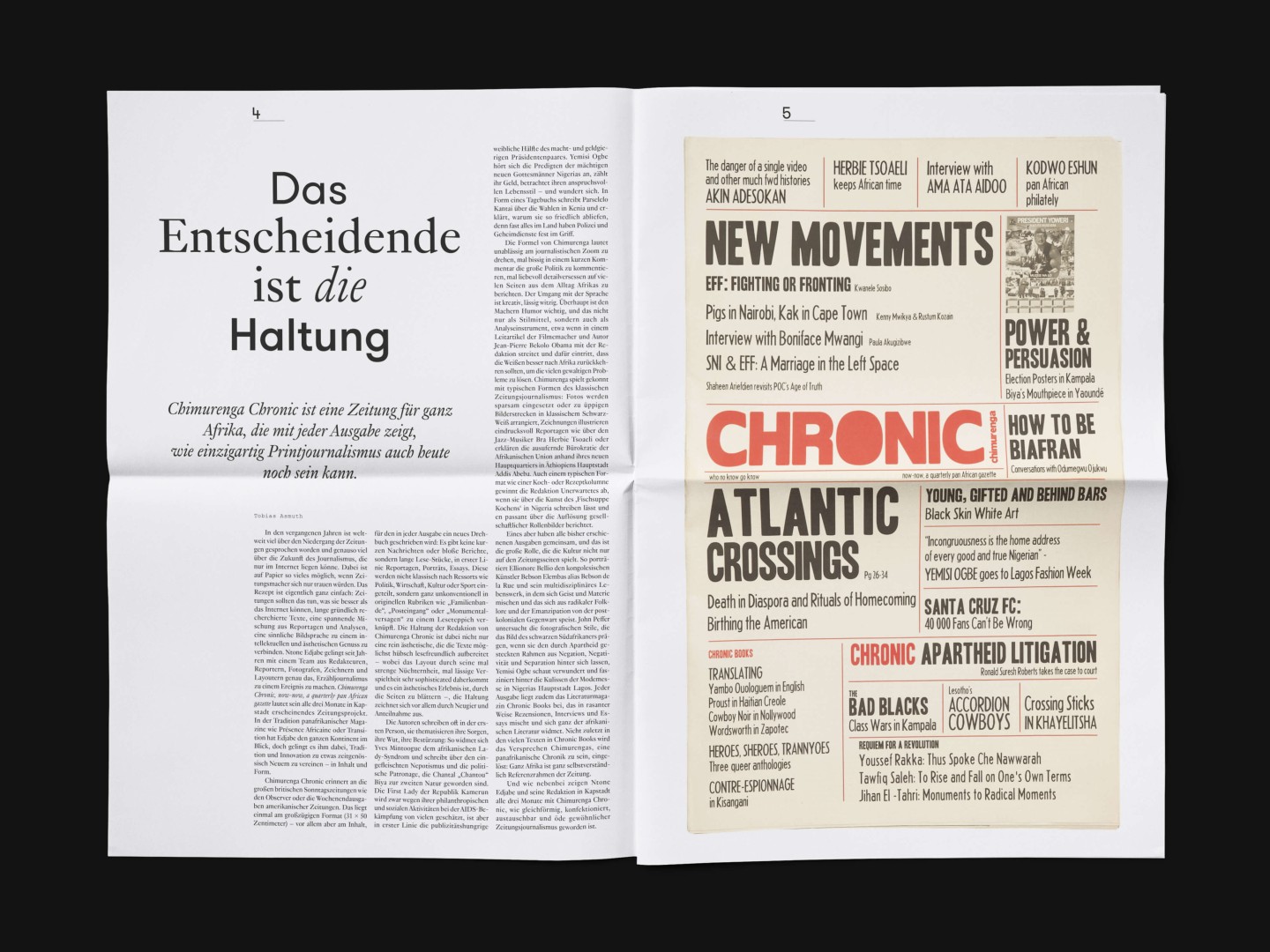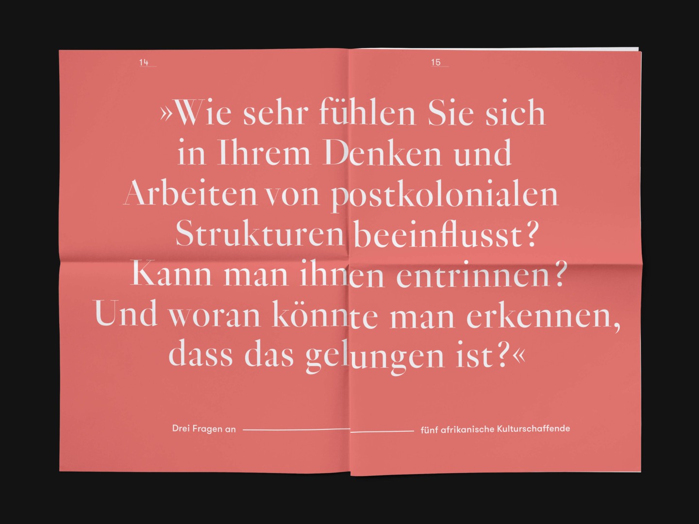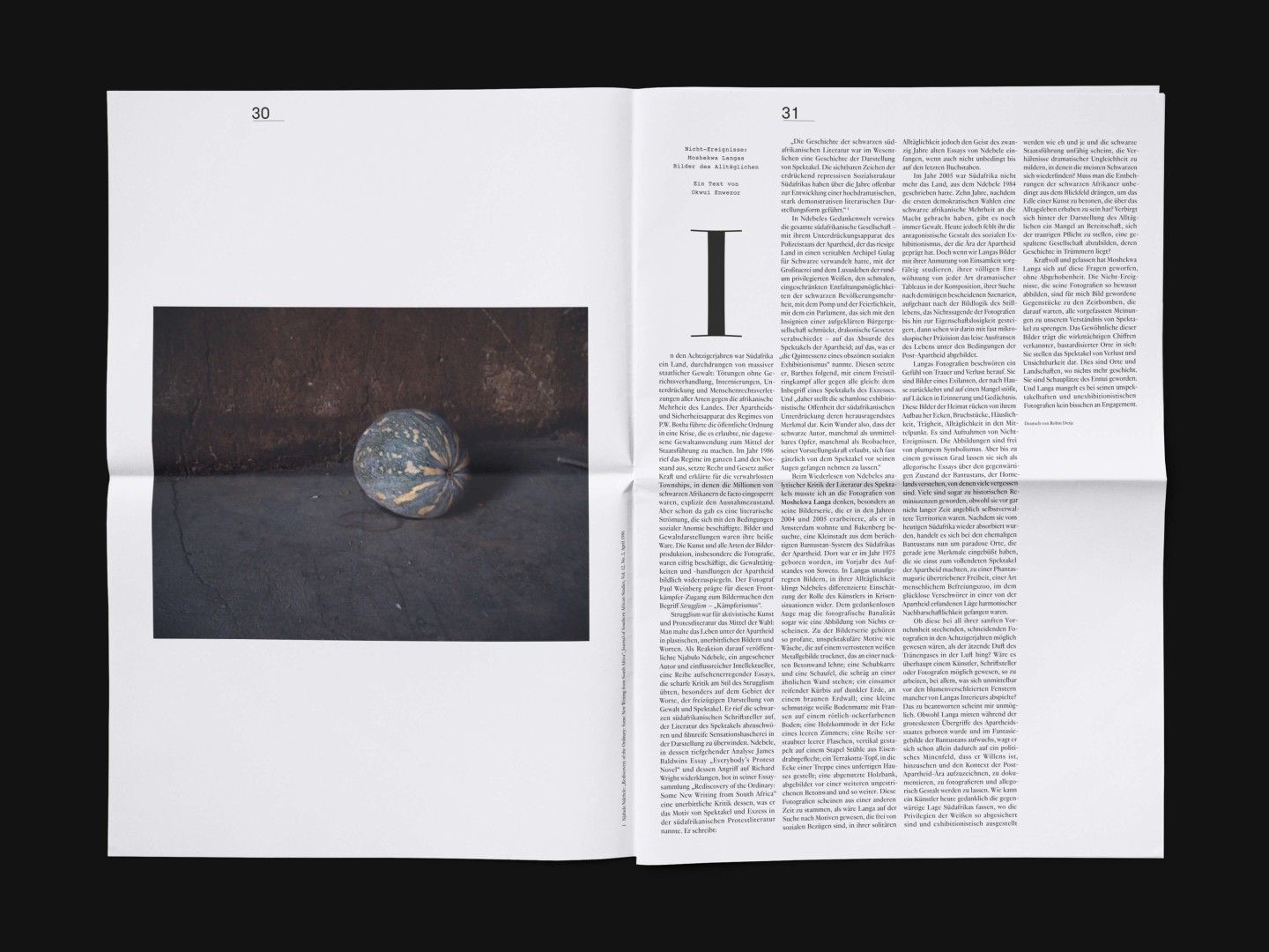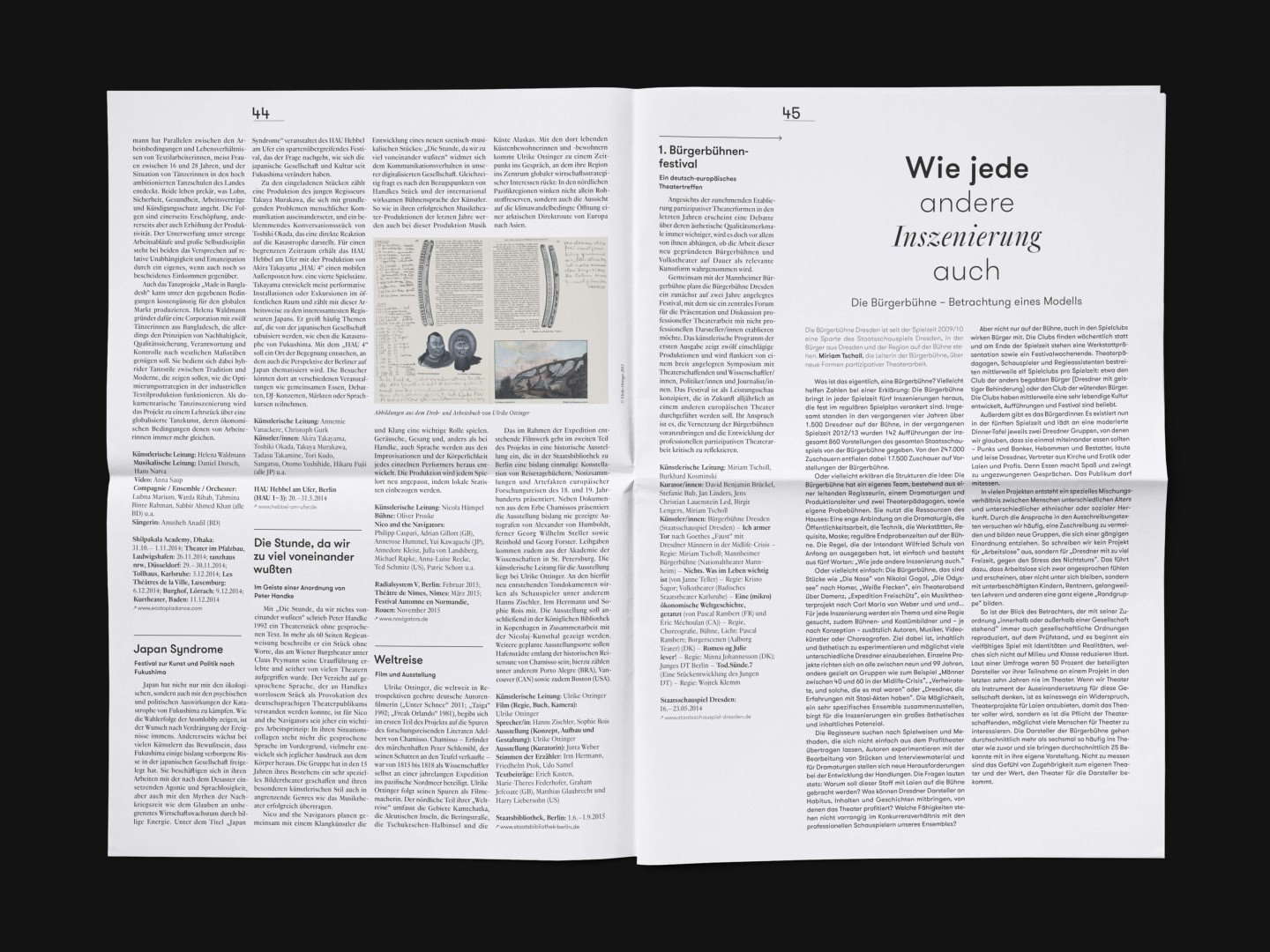 The bi-annual magazine published by The German Federal Cultural Foundation. The foundation specifically engages in projects that develop new methods of fostering cultural heritage and tap into the cultural and artistic potential of knowledge required to address social issues and cultural exchange across borders.