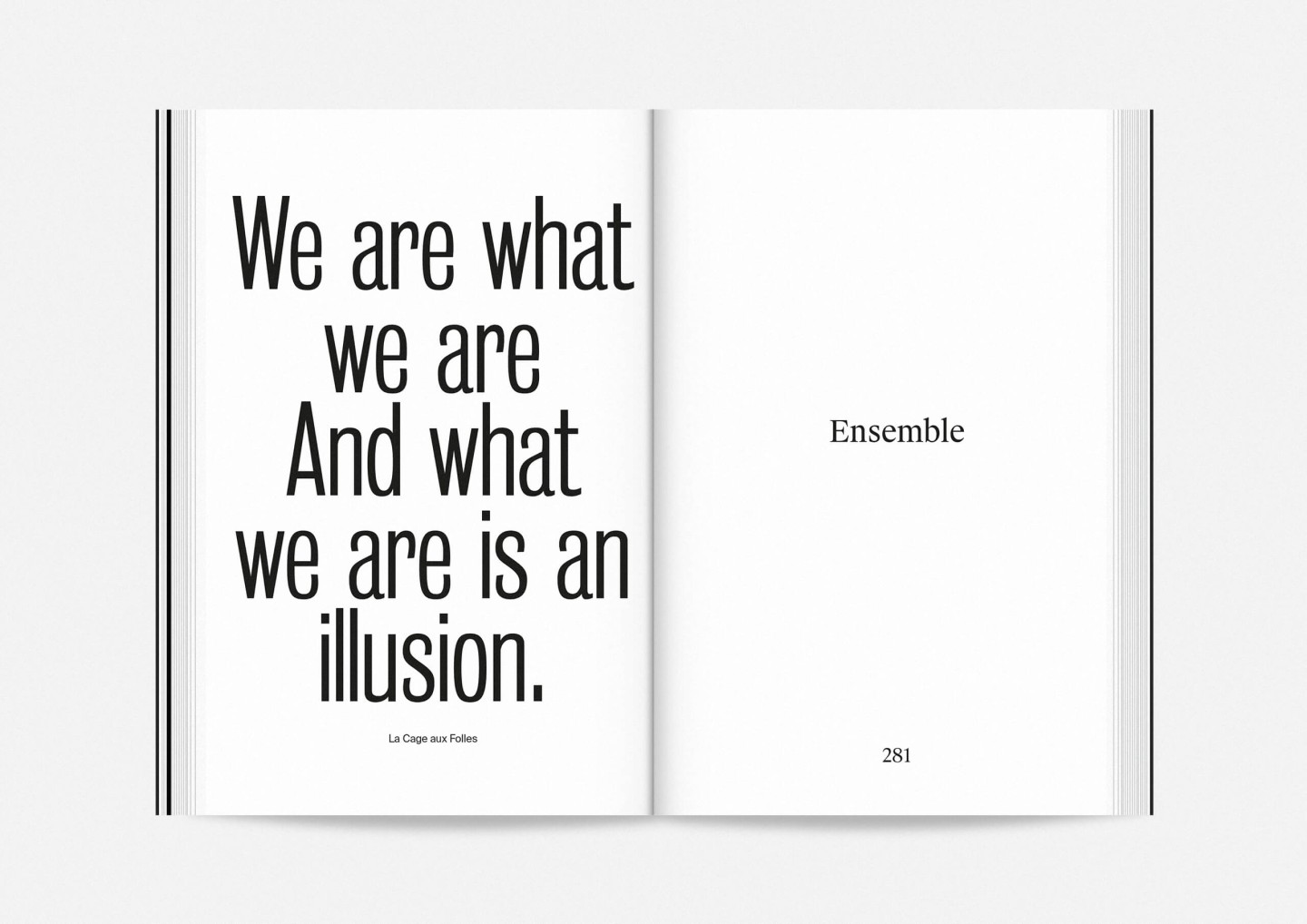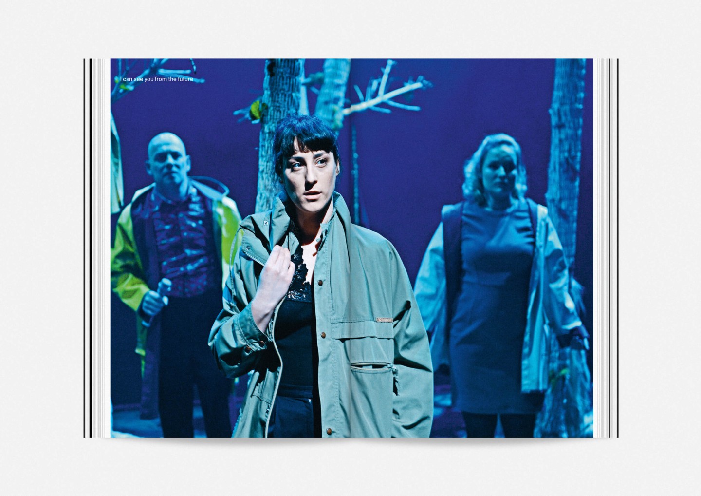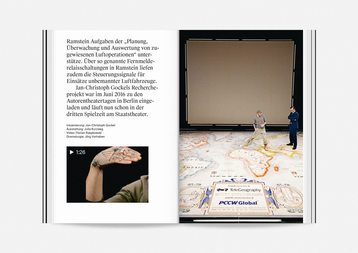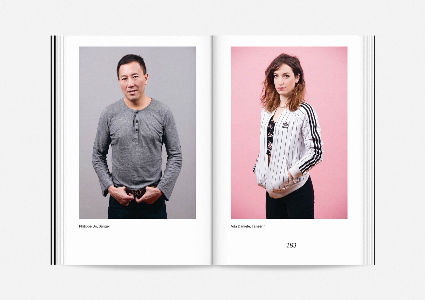 The season program 2017/18 of Staatstheater Mainz (Mainz State Theatre) opens with an impressive collection of photographs of its members, purposefully presented in no hierarchical order to showcase the wide array of talent both on stage and off required to make it work. The program’s strikingly compact format allows for every single face to fill an entire page and momentarily, equanimously, »take center stage«.