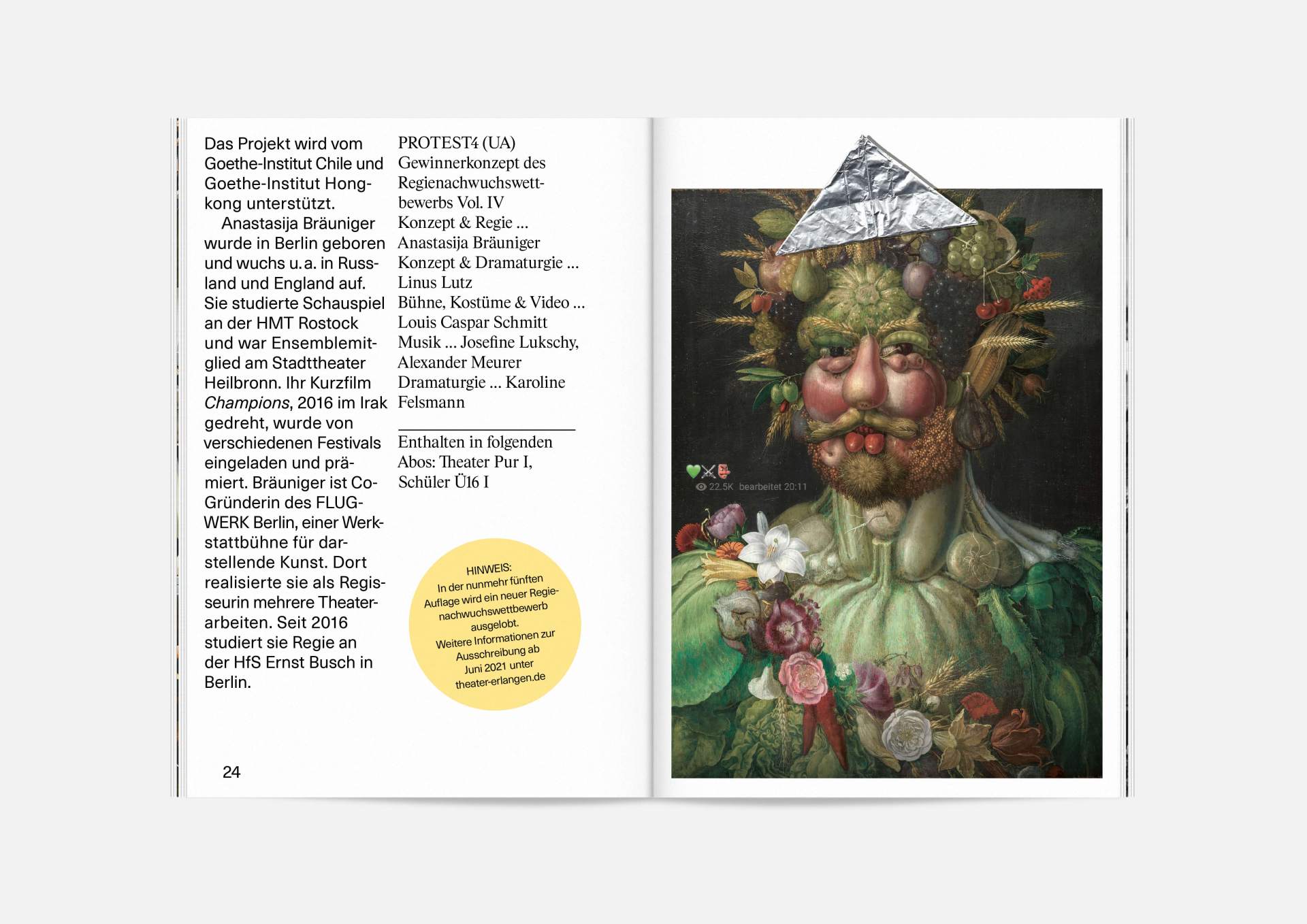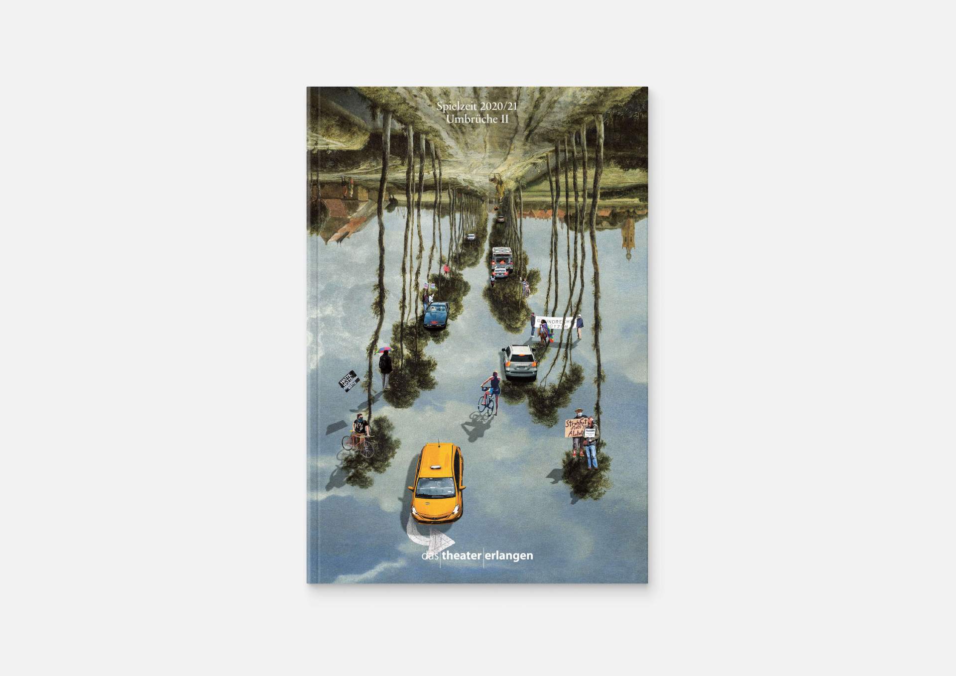 Upheavals number II „An error has occurred“ — The motto of this year’s theater program and the season booklet, created in the eventful and uncertain Corona times of 2020/21. It expresses its braveness in scurry, sometimes quirky collages from the inexhaustible collection of images on the Internet. Freely available, copyright-free illustrations interweaves the familiar and the unfamiliar. In addition to the theater texts in typographical New Objectivity, a non-verbal narrative level opens up in surrealist compositions.