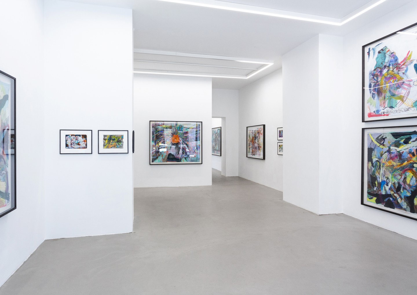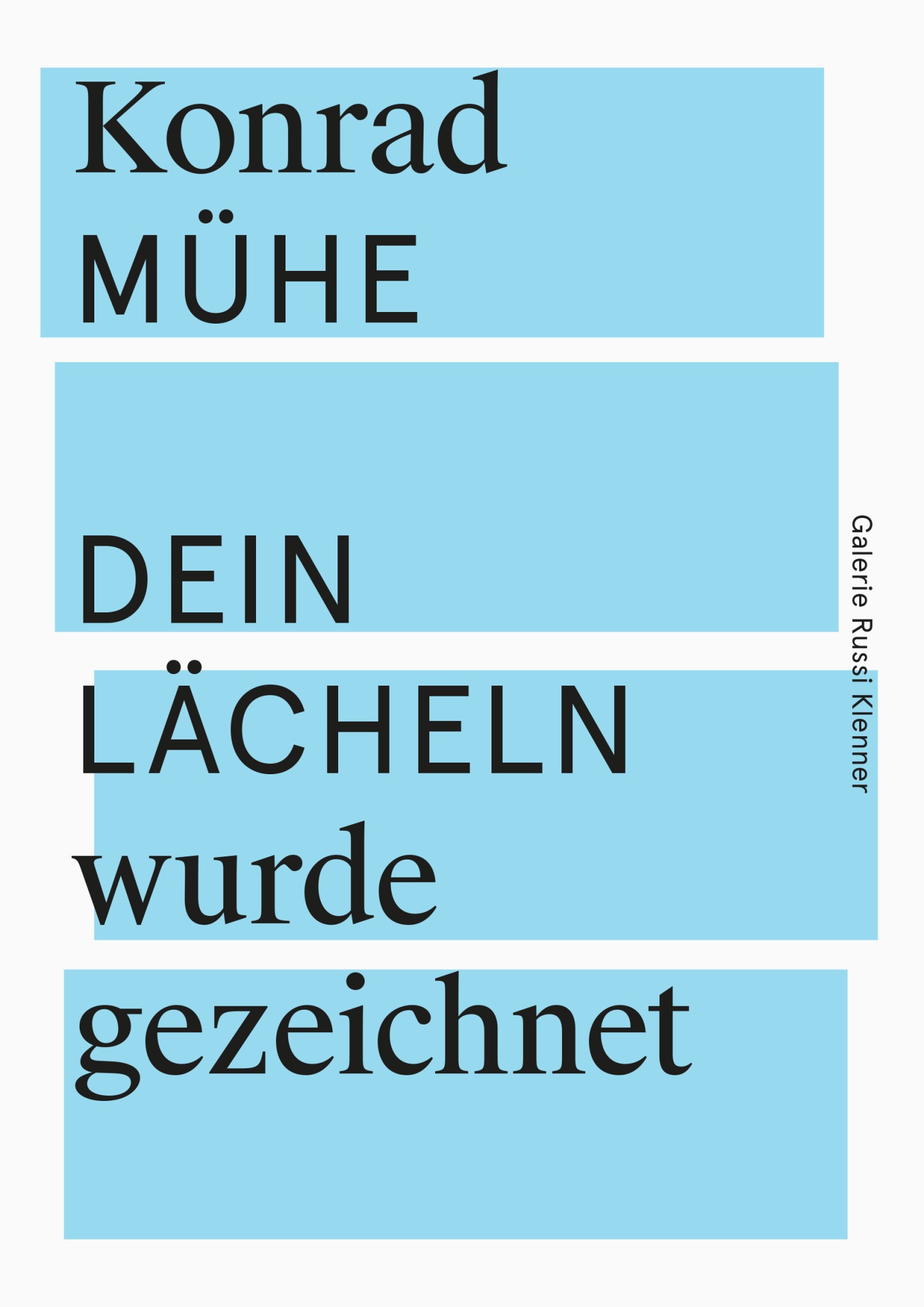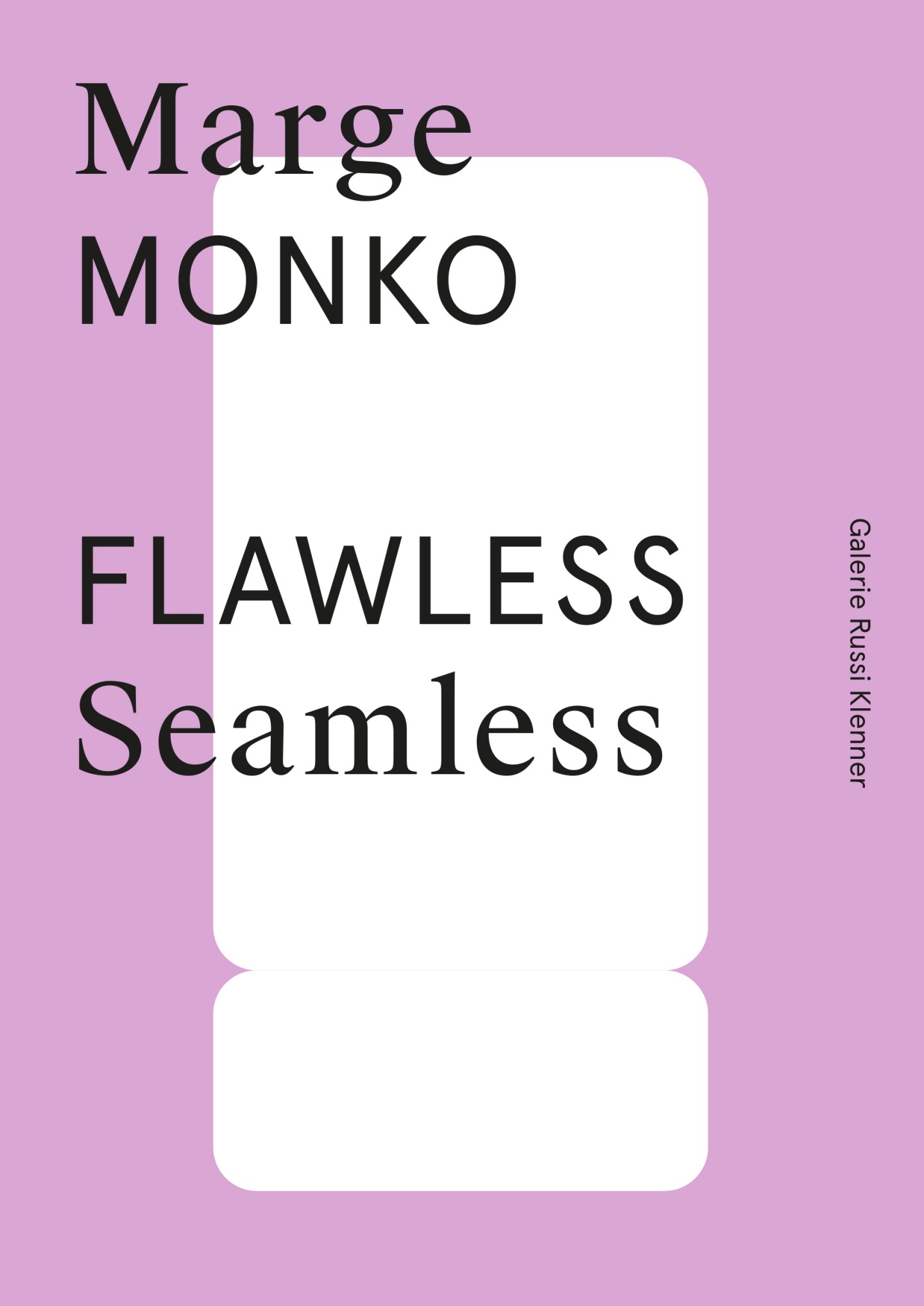 To this end, drawing on ever-surprising variations of a set of purposefully few but striking design elements — the interplay of a mix of clean black type against the background of an abstract, single-color figure on a white base — a highly recognizable cross-media appearance is defined for every artist and exhibition, featuring both as full-screen images on the gallery’s home page and in print on its generously-sized invitation cards.