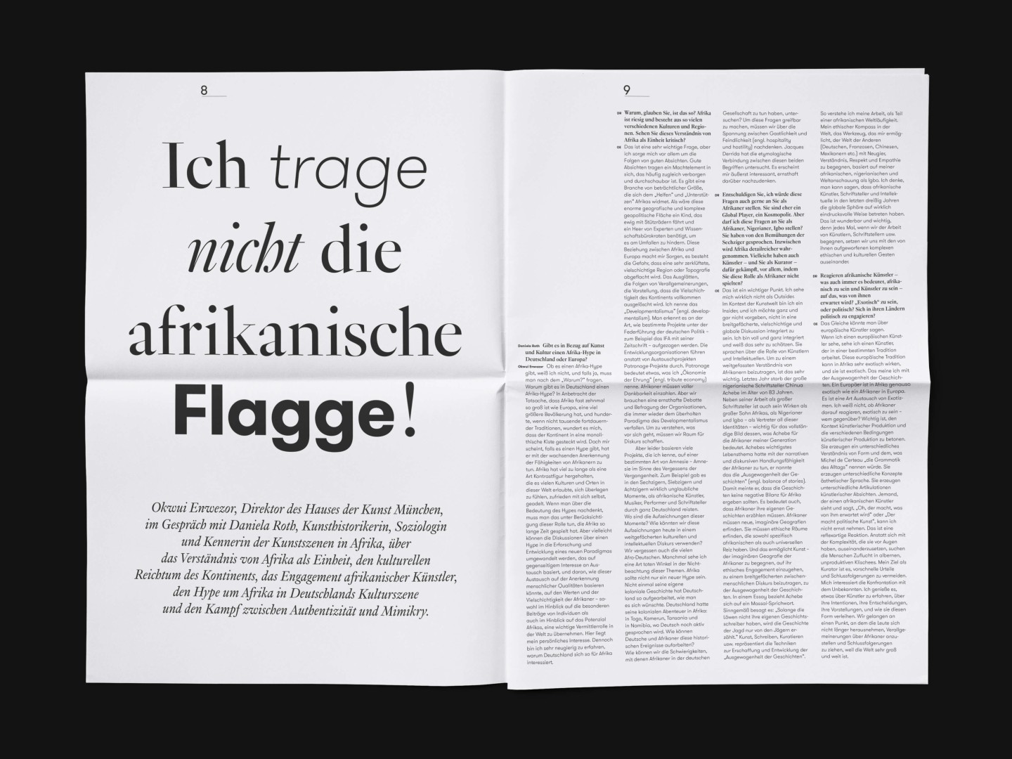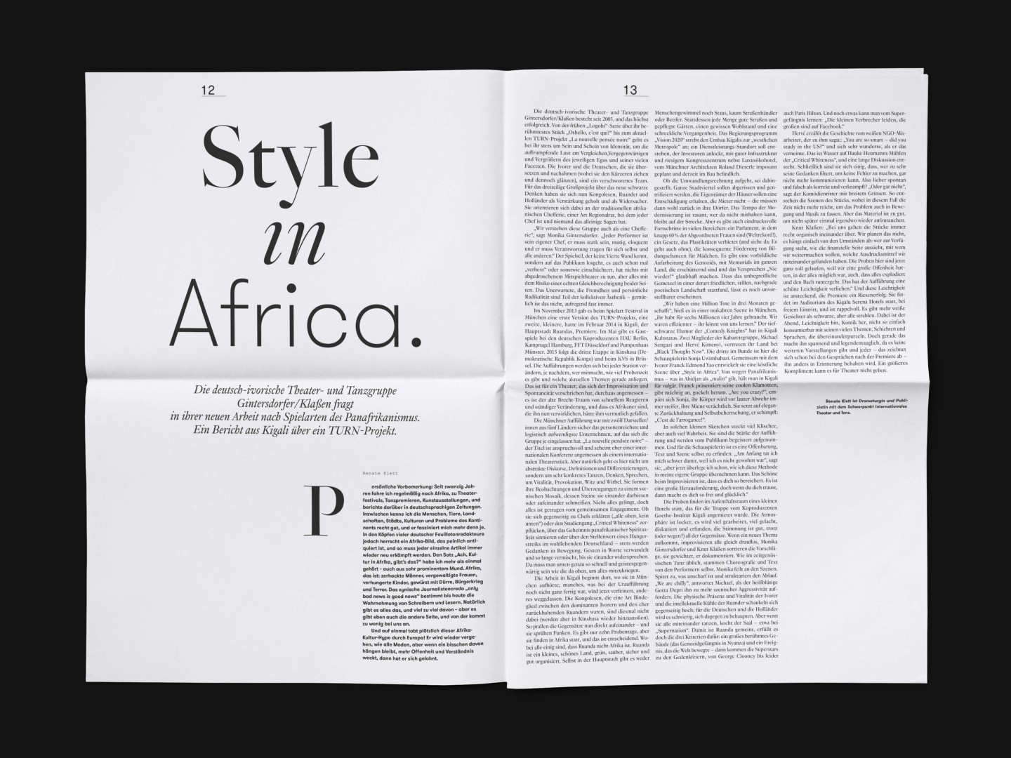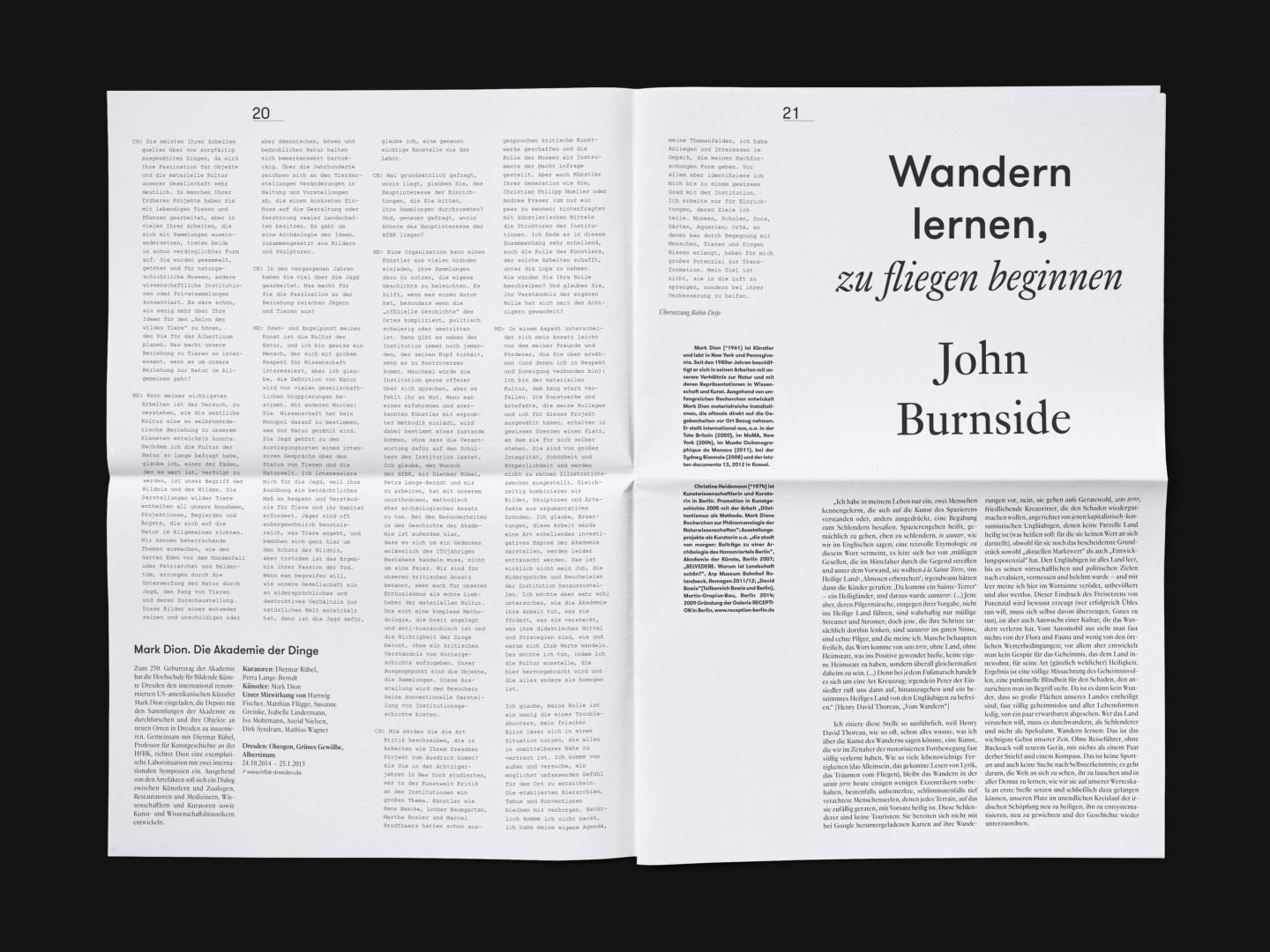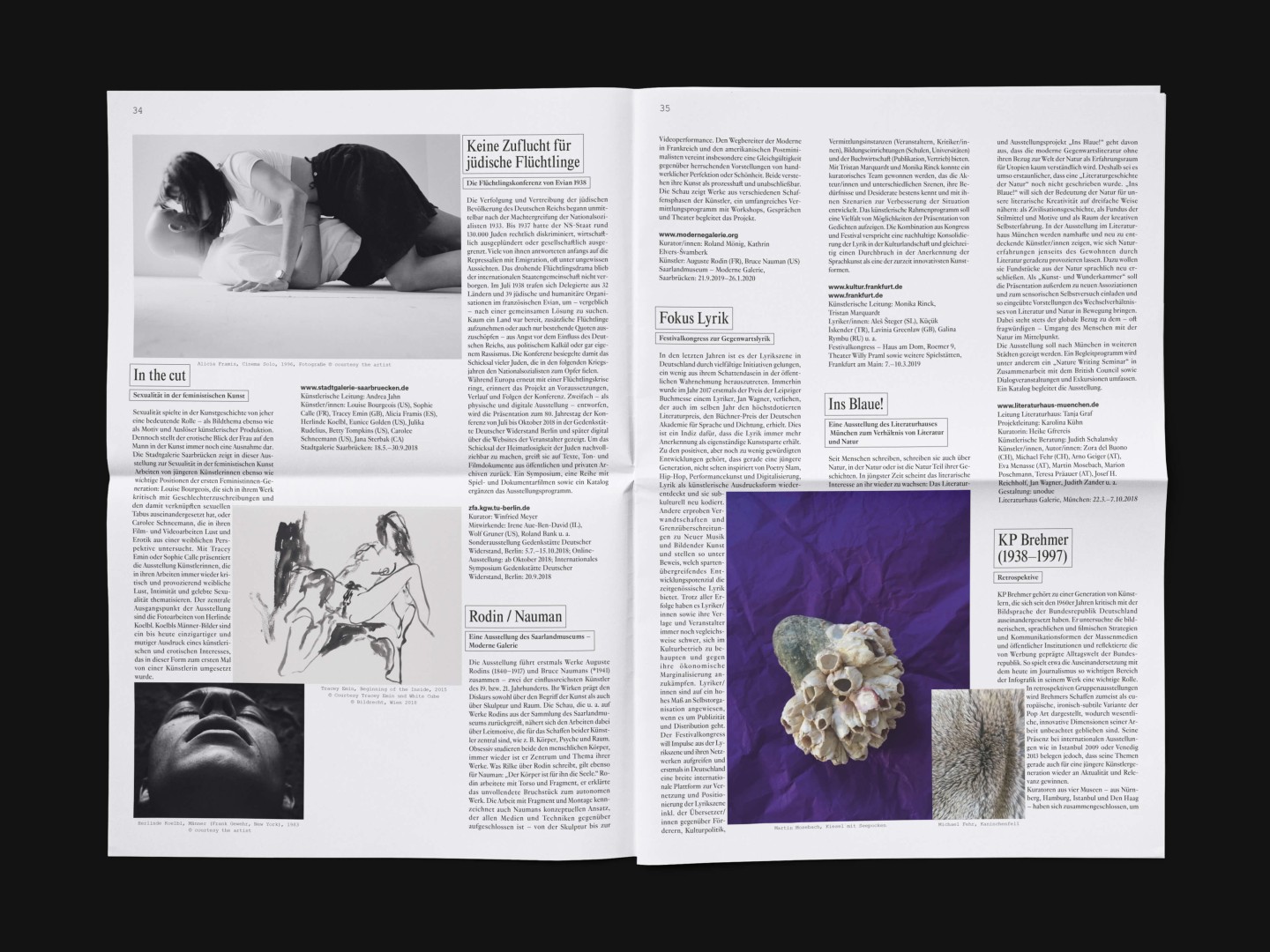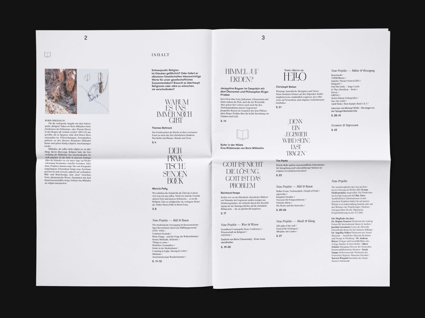 The bi-annual magazine published by The German Federal Cultural Foundation. The foundation specifically engages in projects that develop new methods of fostering cultural heritage and tap into the cultural and artistic potential of knowledge required to address social issues and cultural exchange across borders.