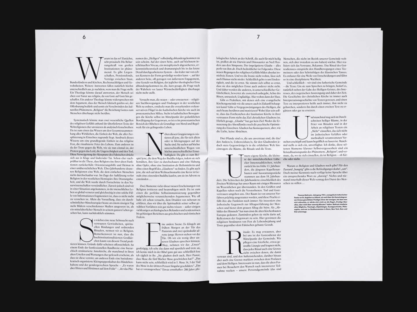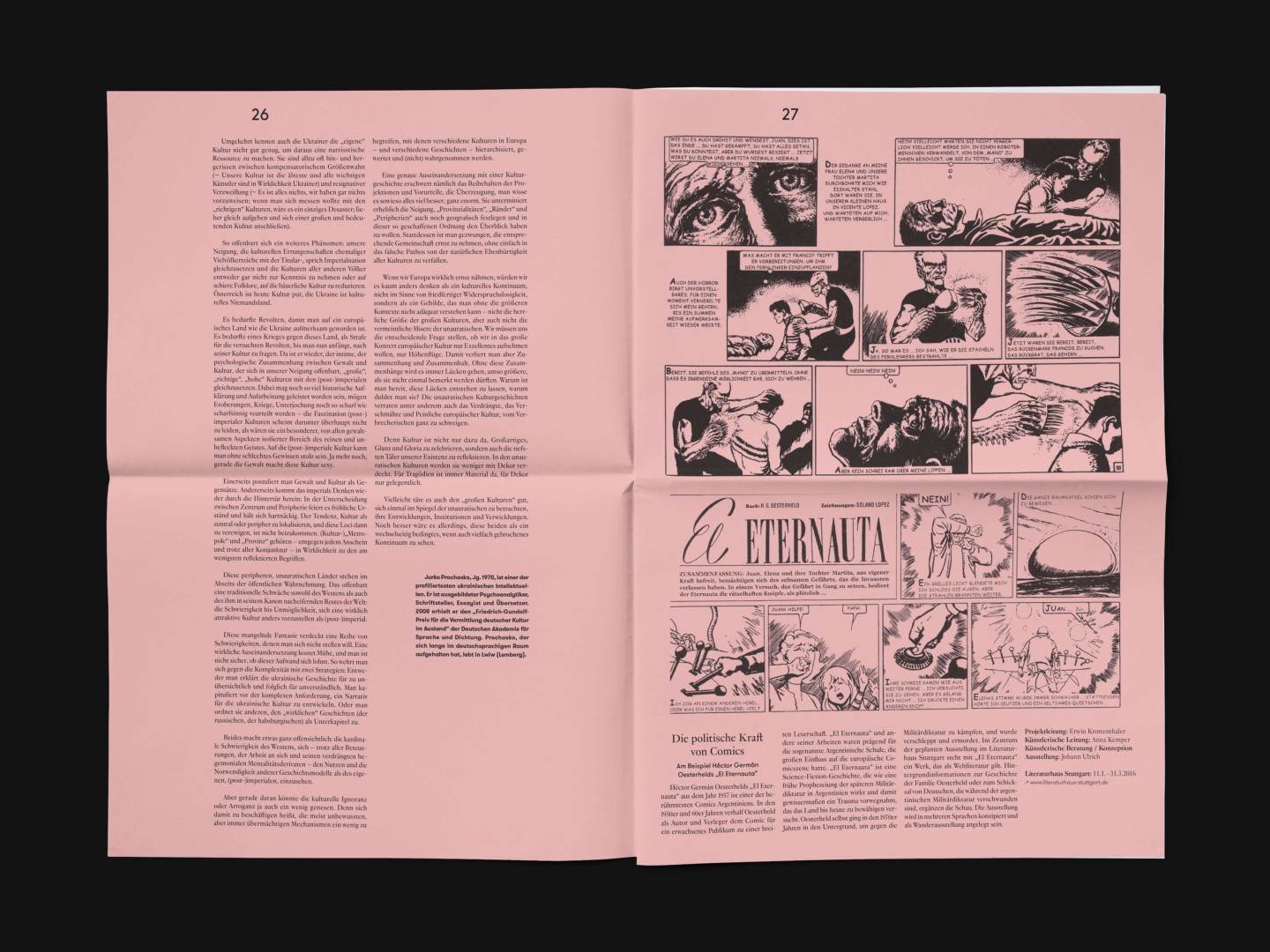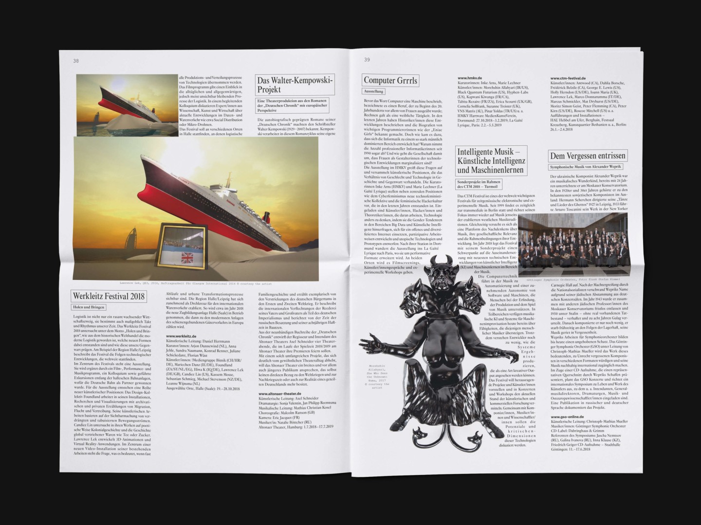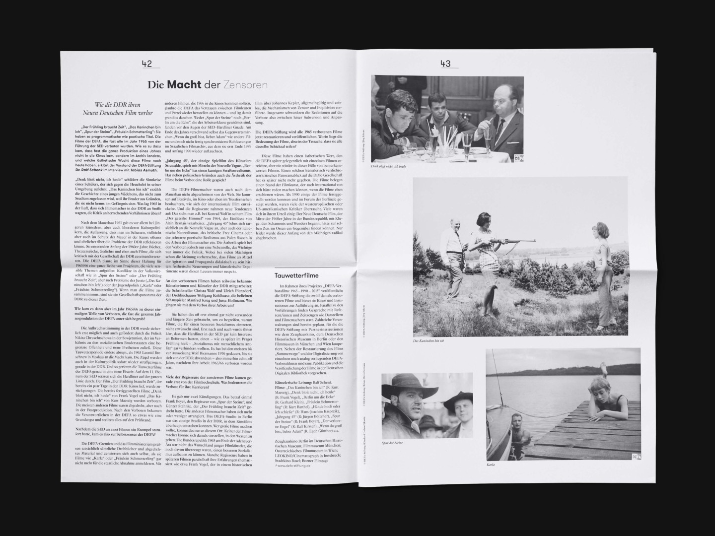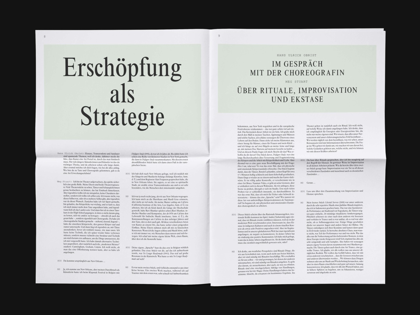 The bi-annual magazine published by The German Federal Cultural Foundation. The foundation specifically engages in projects that develop new methods of fostering cultural heritage and tap into the cultural and artistic potential of knowledge required to address social issues and cultural exchange across borders.