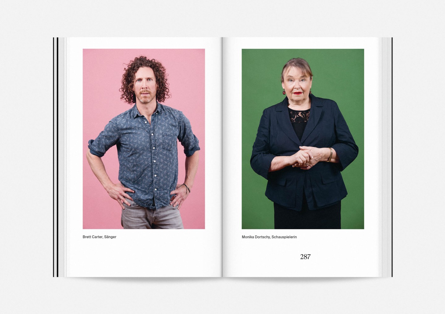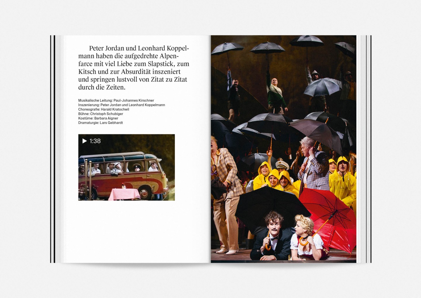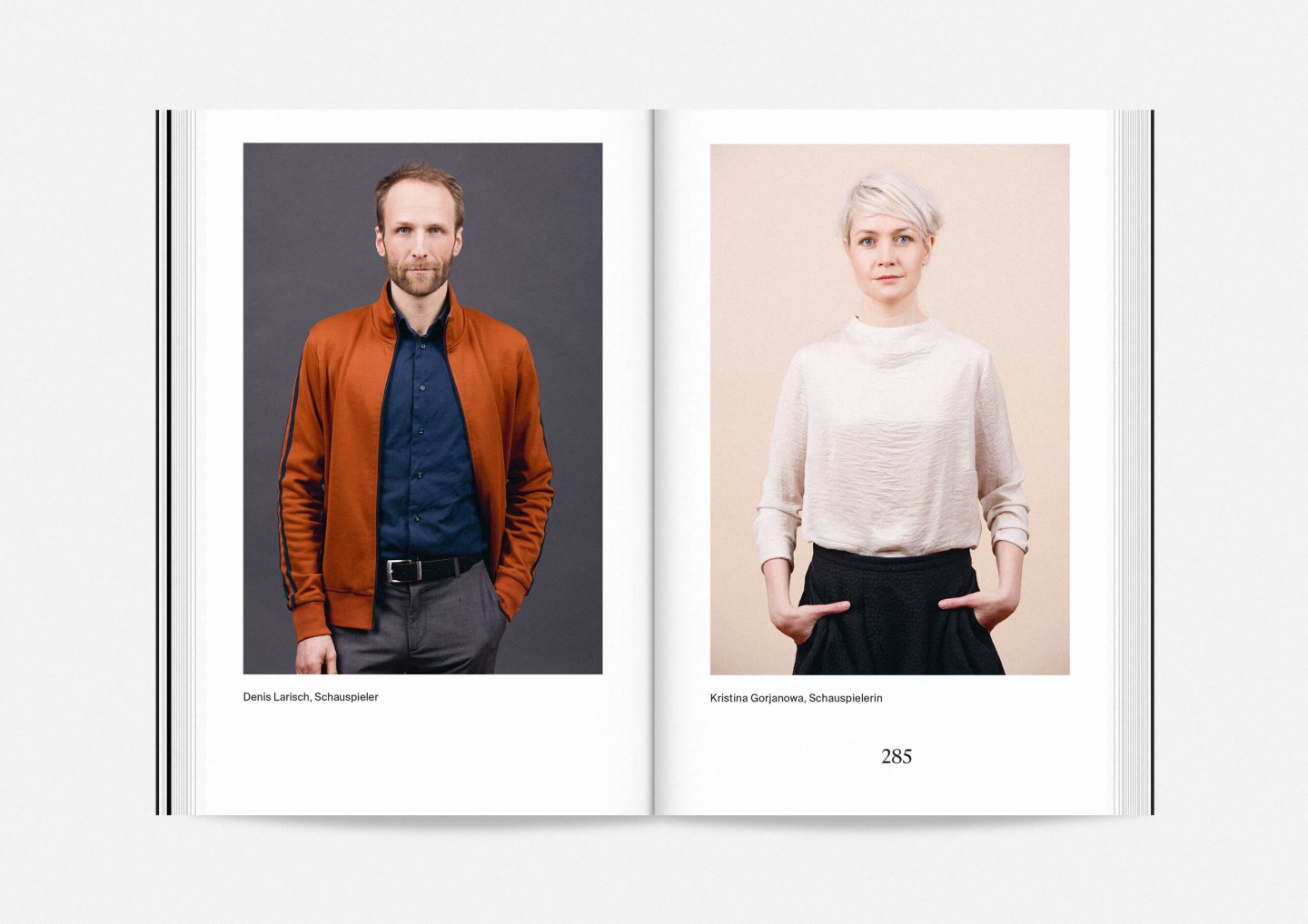 The season program 2017/18 of Staatstheater Mainz (Mainz State Theatre) opens with an impressive collection of photographs of its members, purposefully presented in no hierarchical order to showcase the wide array of talent both on stage and off required to make it work. The program’s strikingly compact format allows for every single face to fill an entire page and momentarily, equanimously, »take center stage«.
