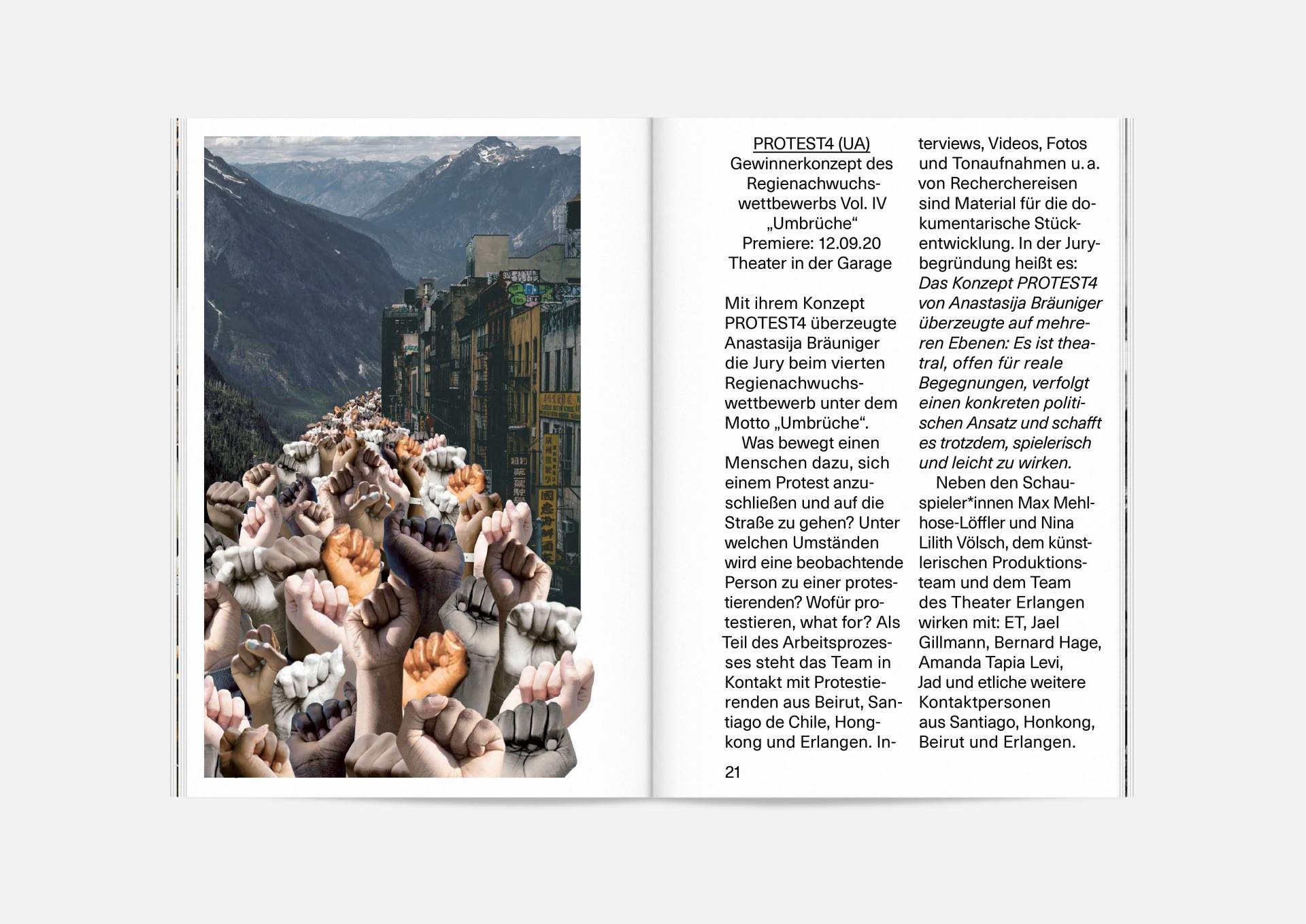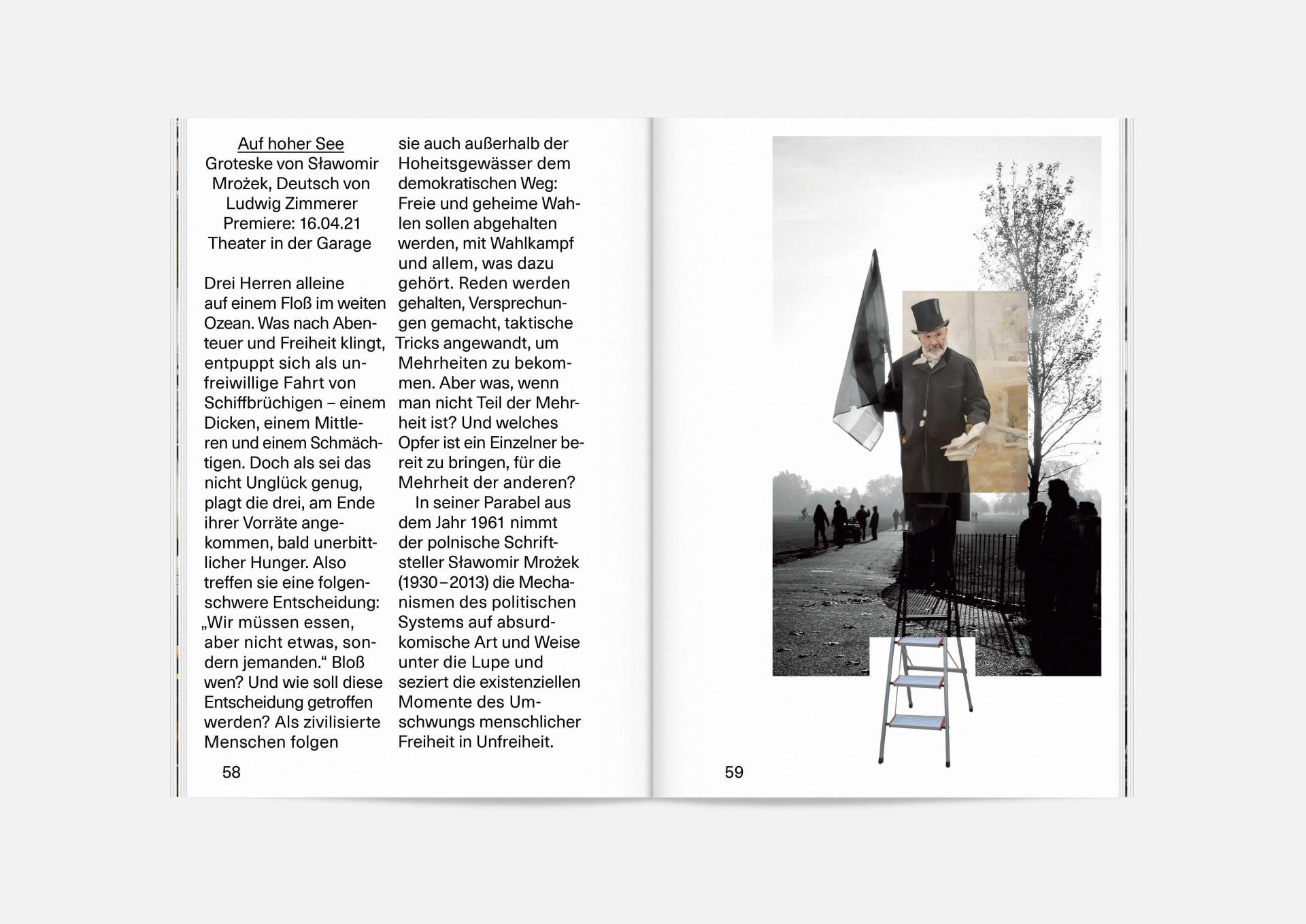 Upheavals number II „An error has occurred“ — The motto of this year’s theater program and the season booklet, created in the eventful and uncertain Corona times of 2020/21. It expresses its braveness in scurry, sometimes quirky collages from the inexhaustible collection of images on the Internet. Freely available, copyright-free illustrations interweaves the familiar and the unfamiliar. In addition to the theater texts in typographical New Objectivity, a non-verbal narrative level opens up in surrealist compositions.